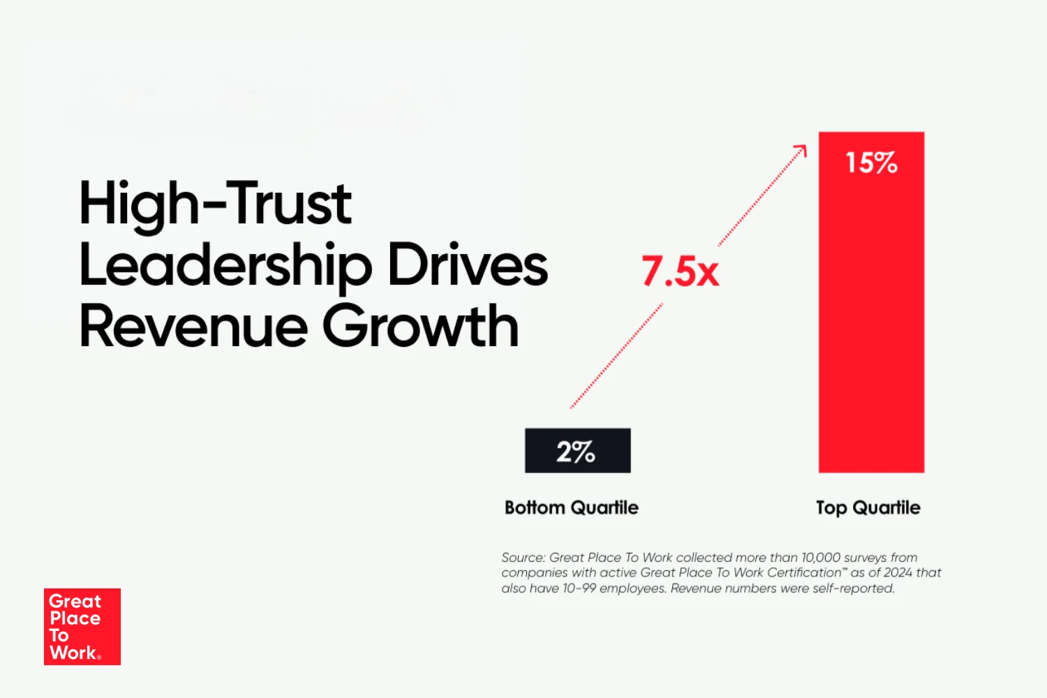It’s more than just a feel-good story. Companies with high-trust cultures are more profitable and have higher stock market returns. Research from FTSE Russell shows that companies on the Fortune 100 Best Companies to Work For® Llist outperform the market by a factor of 3.68.